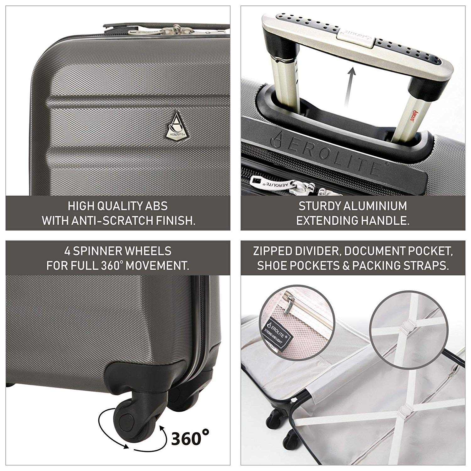Details: Aerolite Leichtgewicht ABS Hartschale 4 Rollen Handgepäck Trolley Koffer Bordgepäck Reisekoffer Gepäck, easyJet…