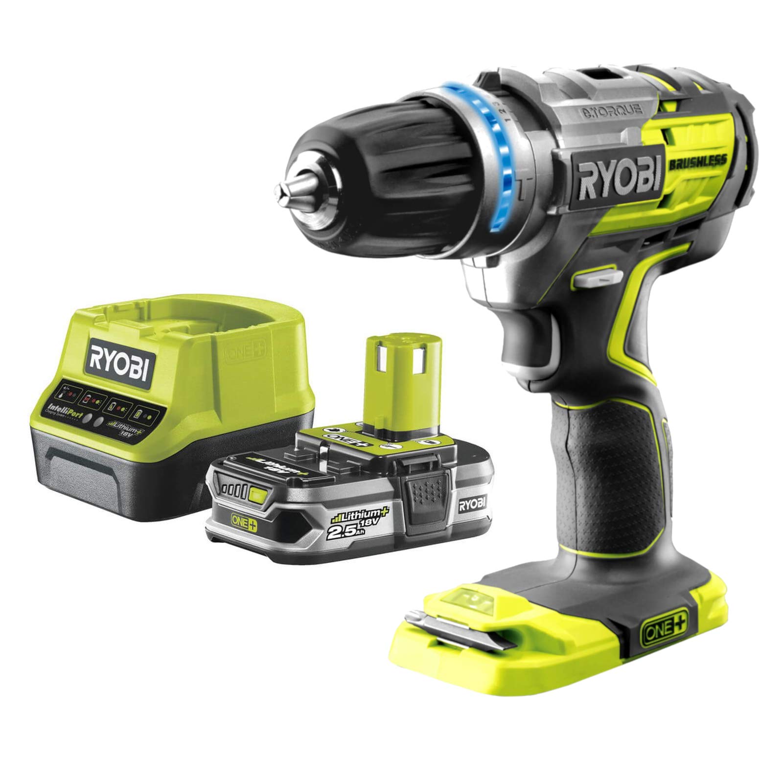 Ryobi Brushless Akku-Schlagbohrschrauber ONE+ 18 V R18PDBL-0, Akkuschrauber-Set inklusive 2,5 Ah Li-Ion Akku & Ladegerät…